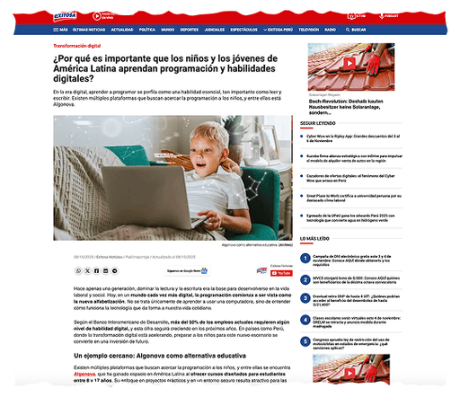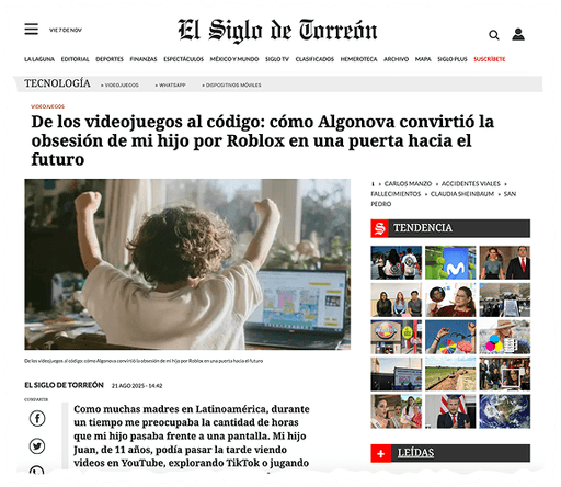 Los medios de toda Latinoamérica destacan el enfoque de Algonova, un aprendizaje que inspira a los niños(as) a crear.